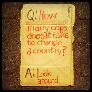Since the beginning of Occupy on September 17th, 2011 over 17 million dollars have been spent in NYPD overtime, policing a non-violent movement and over 2200 arrests have been made according to the National Lawyers Guild. I wonder how much it costs to arrest a homeless man for sleeping? Whatever the cost, it's too much taxpayer money that could be going to creating jobs and alleviating the homeless problem in the US, but in NYC it seems no amount is too much when it comes to funding the police department. Earlier in the week I overheard an officer say, "I hate Occupy but I love the overtime". Great. That's your tax dollars at work, harassing citizens, suppressing free speech and taking us yet one step closer to a police state - with officers just making up the laws as they go. At Occupy though, we see the NYPD overreaction as a measure of our success. Only if we are truly a threat to the status quo would they react with the brute force and numbers that they have.