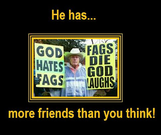 If you haven't heard about Fred Phelps, then it is suggested that you go back to your old planet and read up on him. The "Man Addicted To Hate" and his motley family was in the news even before he tried to dance on Matthew Shepard's grave. Books have been written about his escapades and he has been banned from entering foreign countries. Like Bryan Fischer of the American Family Association, Fred Phelps is an equal-opportunity hate machine, hating everyone who isn't Fred Phelps. And his "sister sites" prove it: GodHatesIslam.com , GodHatesTheMedia.com , GodHatesTheWorld.com , JewsKilledJesus.com , BeastObama.com , PriestsRapeBoys.com , and AmericaIsDoomed.com .